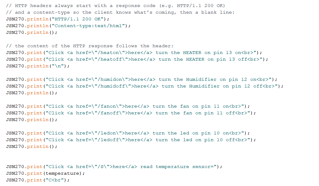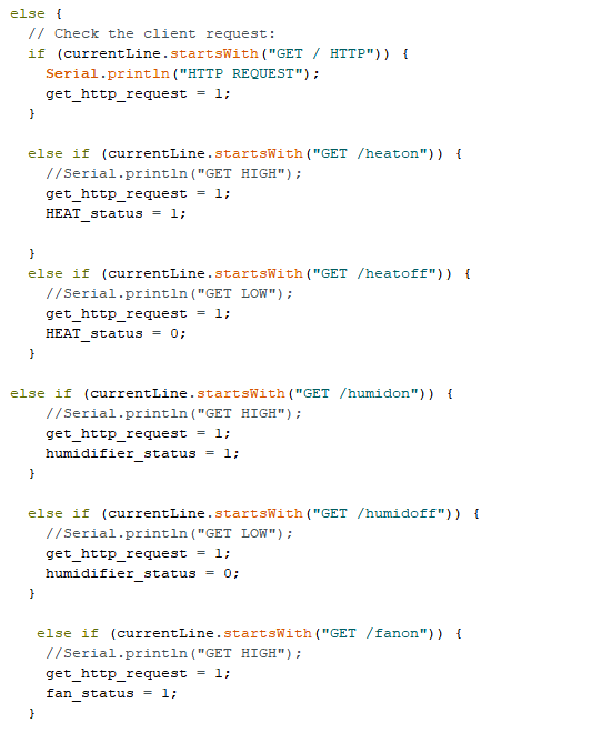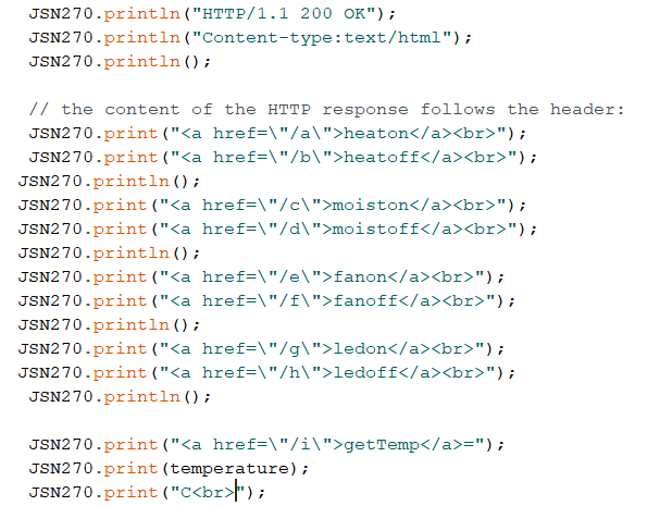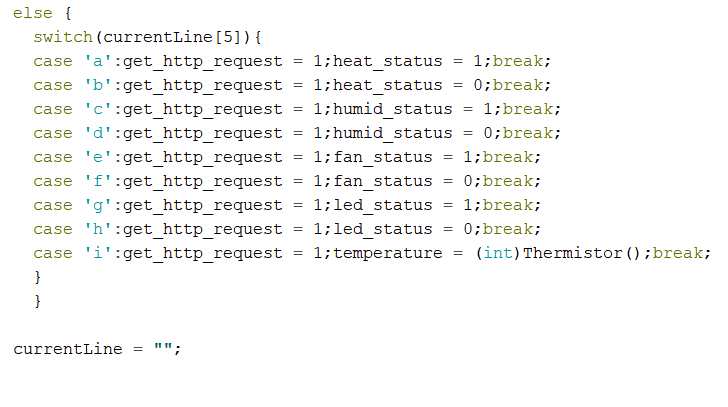 2월15일에 작성한 코드 HTTP를 리턴하는 부분을 하이퍼텍스트만 남기고 모두 잘라냈다. 그리고 핀 컨트롤 부분도 다음과 같이 switch문으로 수