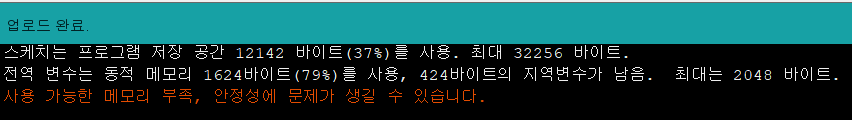 아두이노 스펙비교. 우노vs메가 그러다보니 이렇게 안정성에 문제가 생길 수 있다는 메시지가 뜬다.